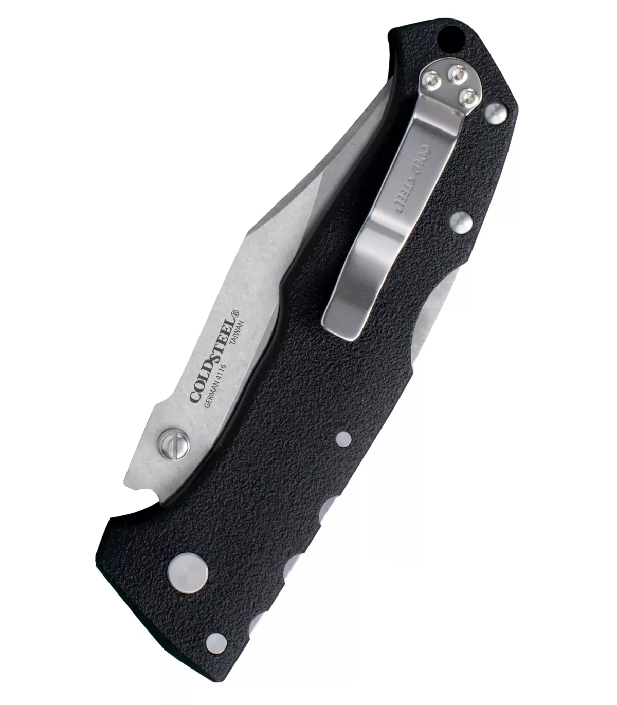 - Mecanismo de bloqueo Tri-Ad®: Equipada con el innovador mecanismo de bloqueo Tri-Ad® de Cold Steel para ofrecer una mayor seguridad y resistencia durante el uso.