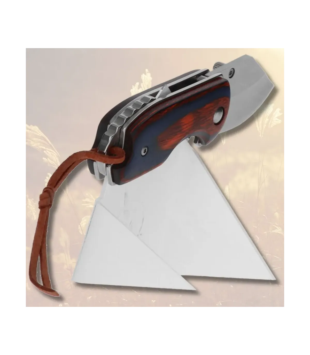 La hoja, fabricada en acero inoxidable, garantiza una resistencia excepcional a la corrosión, lo que significa que podrás confiar en su rendimiento a lo largo del tiempo. Con un acabado mate que minimiza los reflejos, esta navaja es perfecta para quienes valoran la discreción y la elegancia. Su punta cortada permite realizar cortes precisos, convirtiéndola en una herramienta versátil para cualquier tarea.