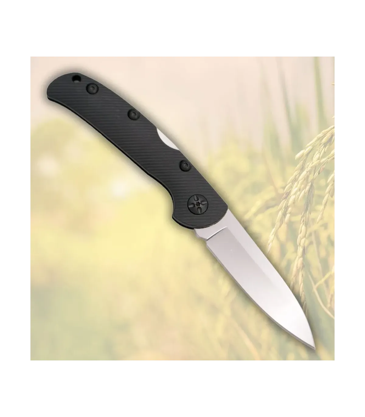 La navaja de bloqueo Third N76N es una herramienta versátil y ligera, pensada para quienes buscan rendimiento y estilo en sus actividades diarias. Su hoja de acero inoxidable 420 de 8 cm cuenta con un acabado en brillo espejo que no solo le da un toque sofisticado, sino que también protege contra la corrosión y facilita la limpieza. Con un grosor de 2,8 mm, esta hoja asegura precisión y estabilidad, ideal para múltiples tipos de corte.
