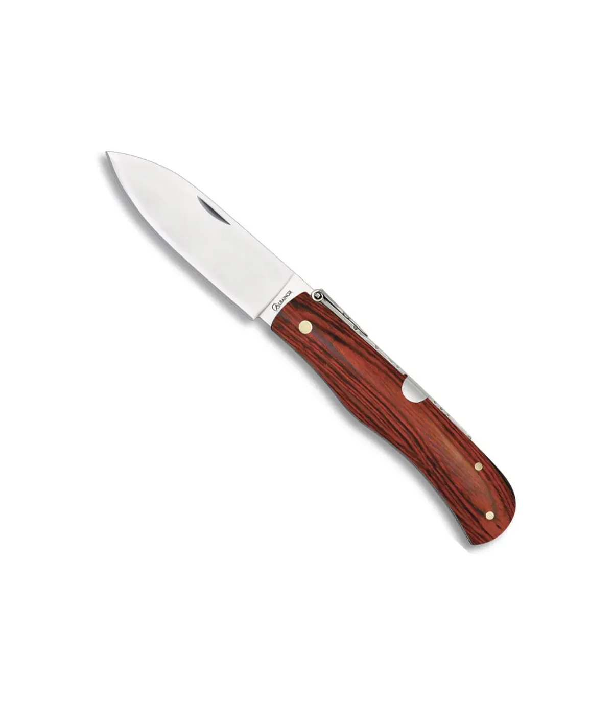 La Navaja Albainox Pakkawood Rojo cuenta con un mango ergonómico de Stamina roja que proporciona un agarre seguro y cómodo, incluso en condiciones húmedas. También cuenta con un bloqueo de palanquilla que evita que la hoja se cierre accidentalmente.