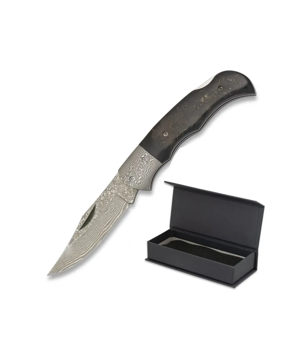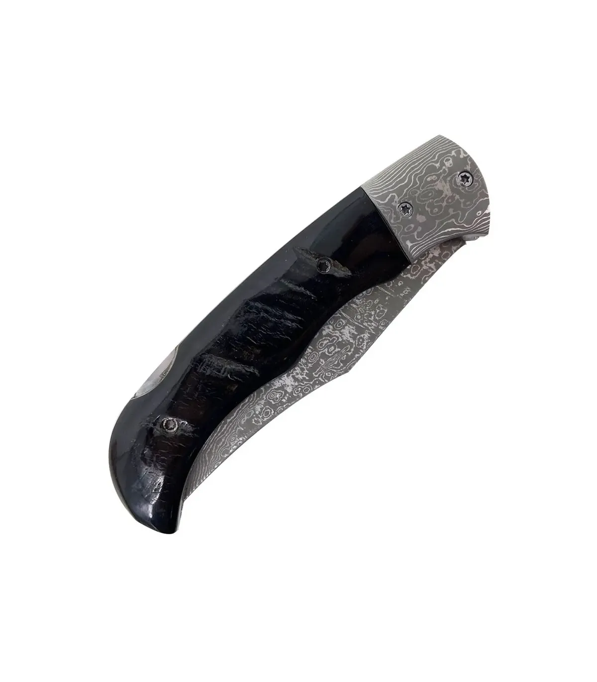 Esta navaja de acero Damasco es una elección elegante y funcional para cualquier entusiasta de las navajas. El acero Damasco y el diseño de la asta de buey le dan un aspecto clásico y sofisticado, mientras que su hoja afilada y duradera la hace útil para una variedad de tareas.