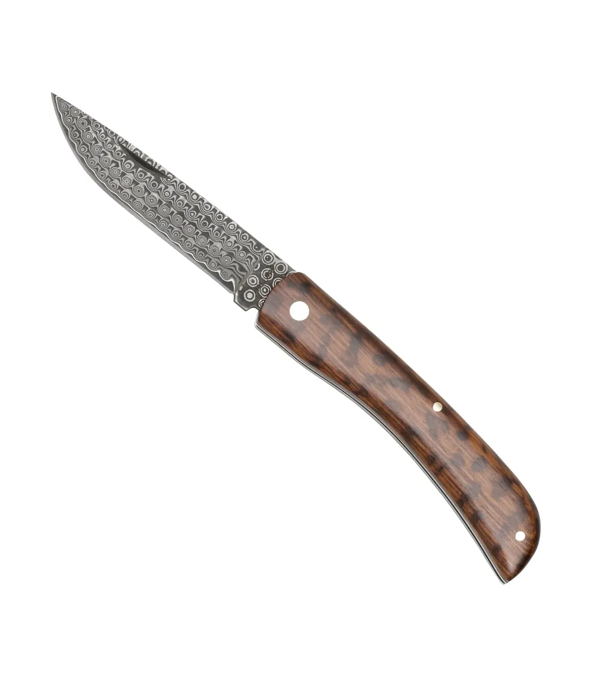 Navaja Bolsillo premium Acero Damasco Mango Madera Serpiente