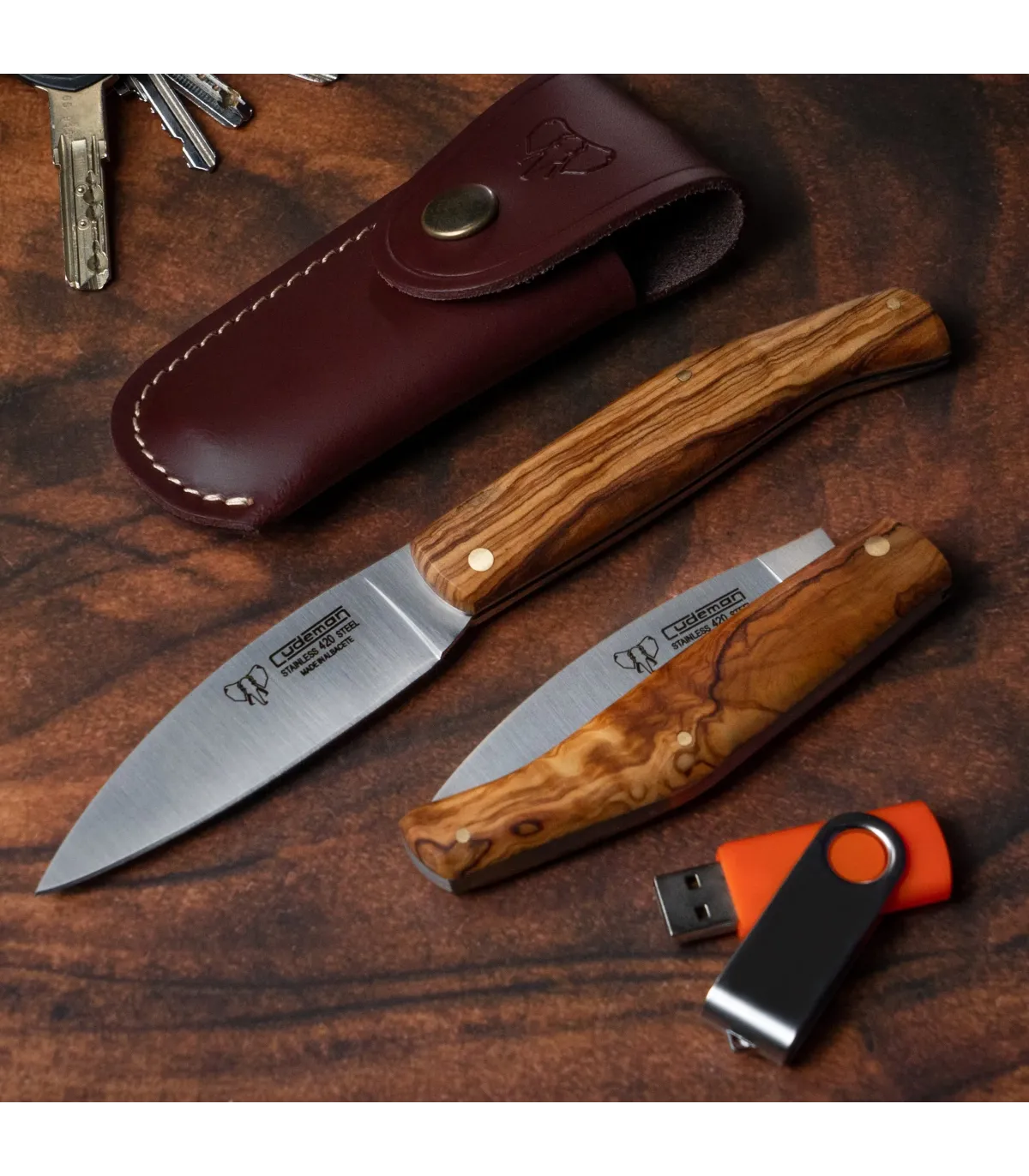 Navaja de caza Cudeman, mango olivo natural (con funda)