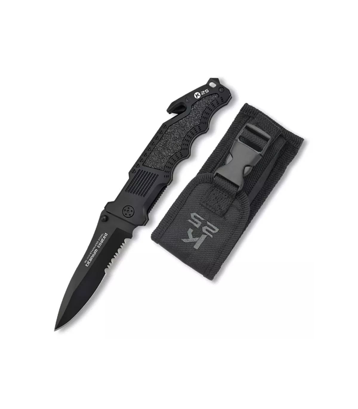 Ya sea que te encuentres en una situación de rescate o necesites una herramienta confiable para tus aventuras al aire libre, la Navaja de rescate K25 negra está lista para ser tu compañera confiable. ¡No te arriesgues, elige calidad y funcionalidad en cada momento!