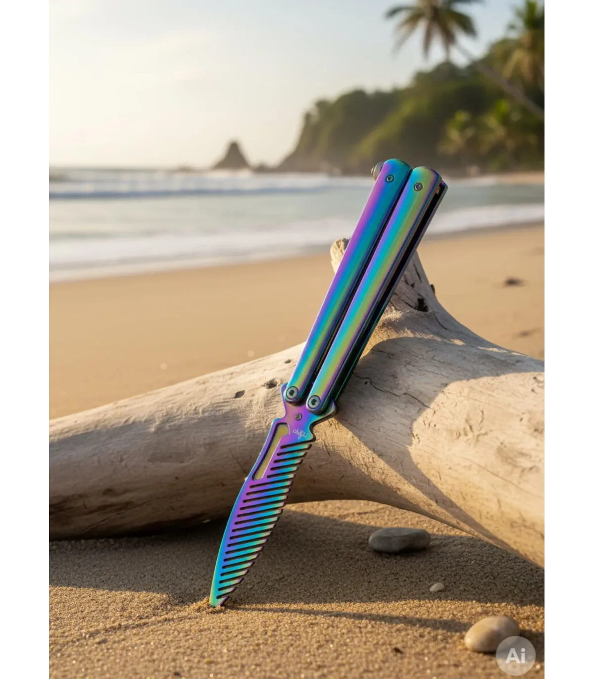¿Buscas una navaja que combine estilo y funcionalidad de manera única? Este abanico estilo peine rainbow te sorprenderá con su acabado iridiscente que refleja una explosión de colores vibrantes, cambiando según la luz y el ángulo, aportando un toque de distinción a tu colección.