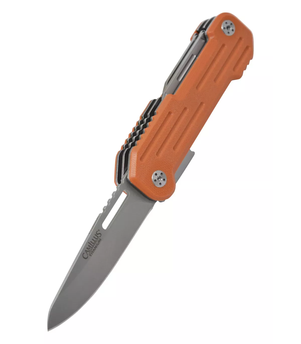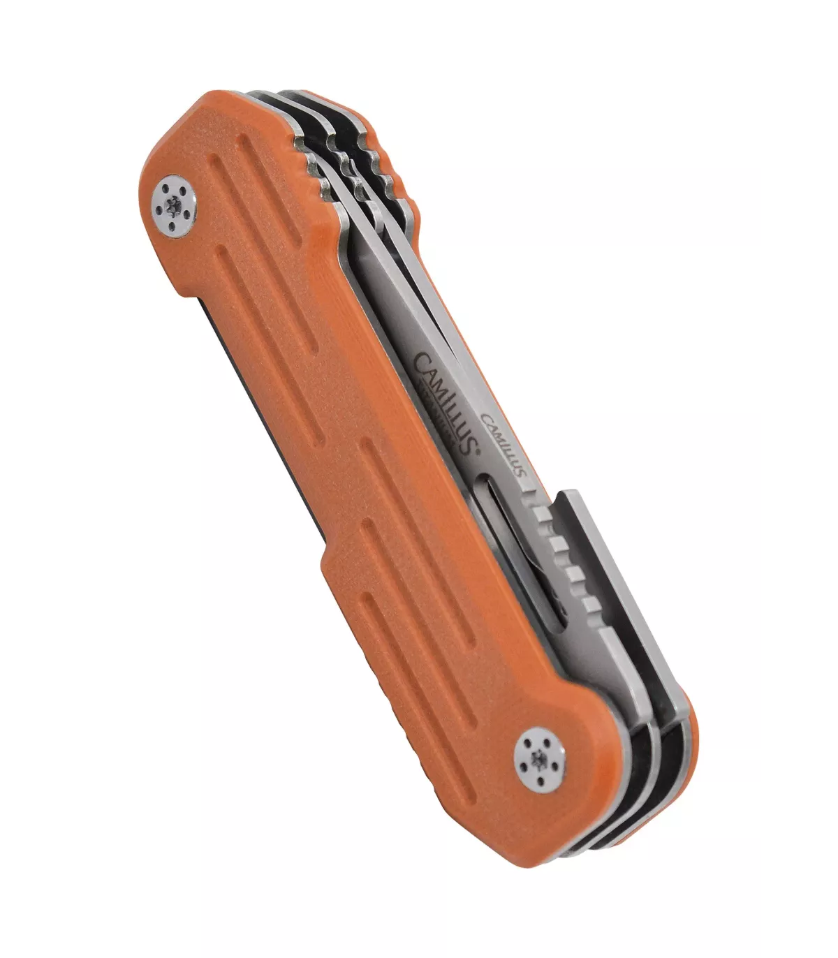 Descubre la versatilidad incomparable de la navaja multiusos Camillus modelo Pocket Block en su vibrante color naranja.