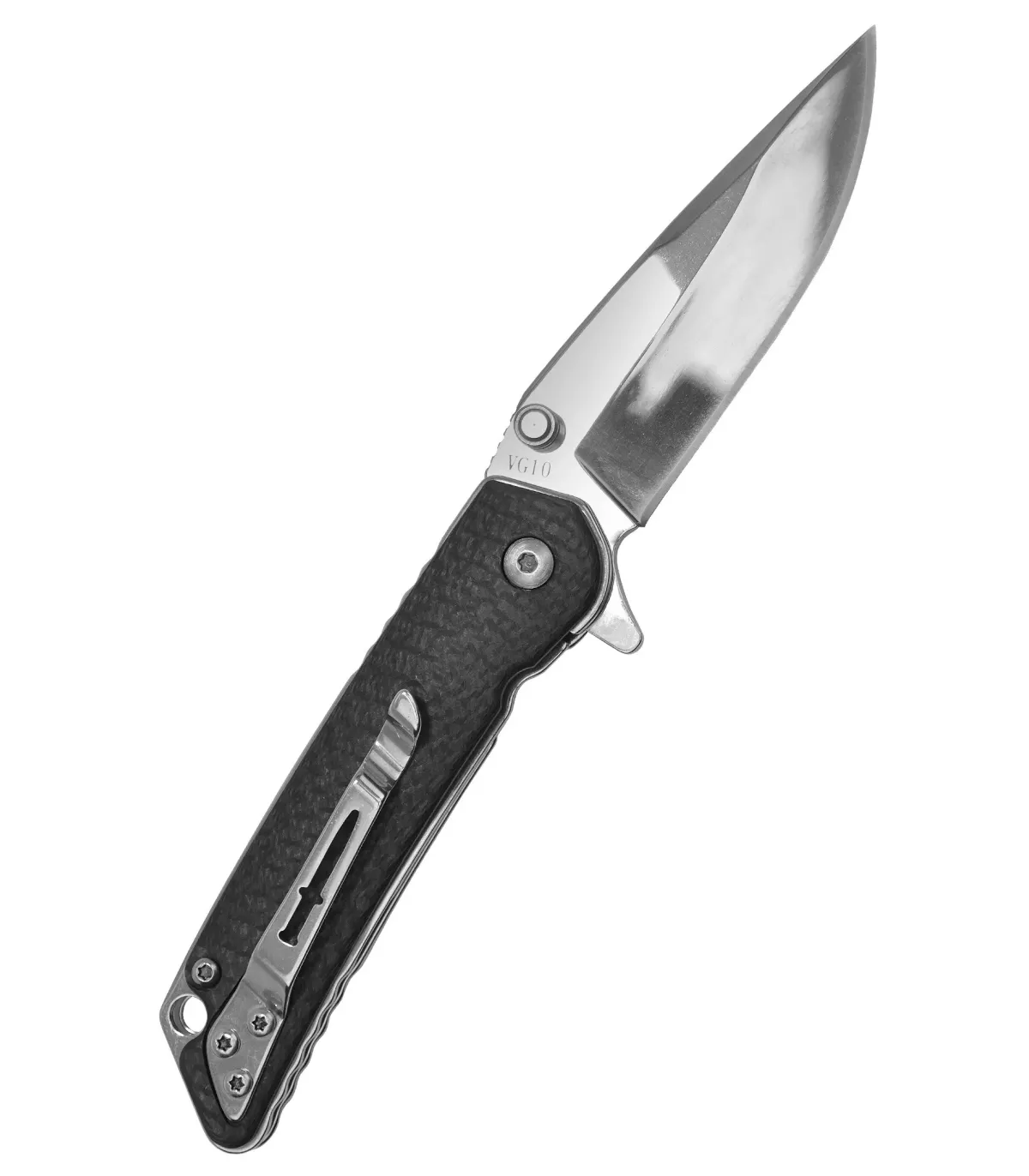 - Acero de Alto Rendimiento: Fabricada con acero japonés VG-10 de alta calidad, la hoja de esta navaja táctica mide 6.9 cm y cuenta con un afilado punto de caída con molido hueco. Gracias al proceso de titanio bonding, la hoja es hasta 3 veces más resistente que el acero sin tratar, ofreciendo una excepcional resistencia a la corrosión y un rendimiento duradero.