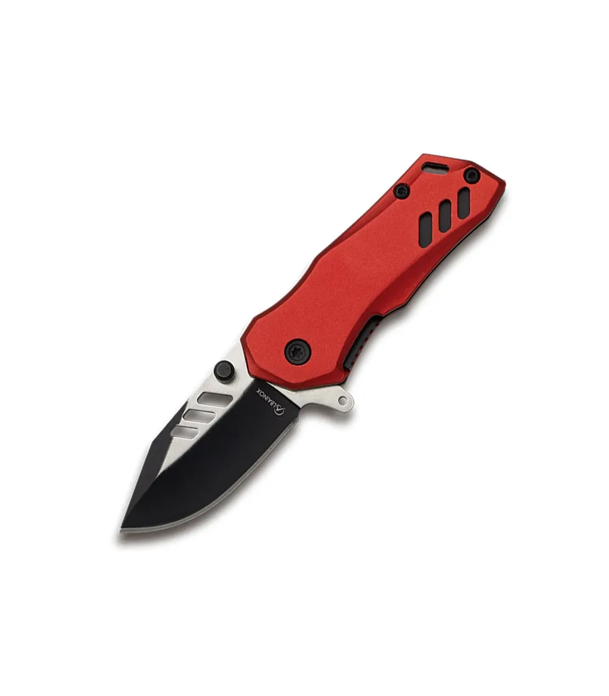 La hoja de la navaja táctica K-25 está fabricada en acero inoxidable 7Cr13MoV, un material que es muy resistente y duradero. La hoja también tiene un acabado satinado que la hace lucir elegante y sofisticada. El mango de la navaja está hecho de aluminio rojo, un material que es ligero y duradero. El mango también tiene un diseño ergonómico que proporciona un agarre cómodo y seguro.