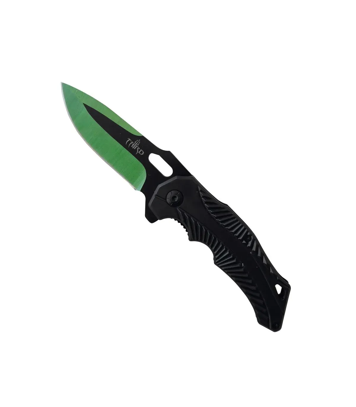- Anodizado Verde en el Corte: El anodizado verde en el corte de la hoja no solo agrega un toque de estilo, sino que también proporciona una mayor resistencia a la corrosión en esa área propensa a la exposición y al desgaste.