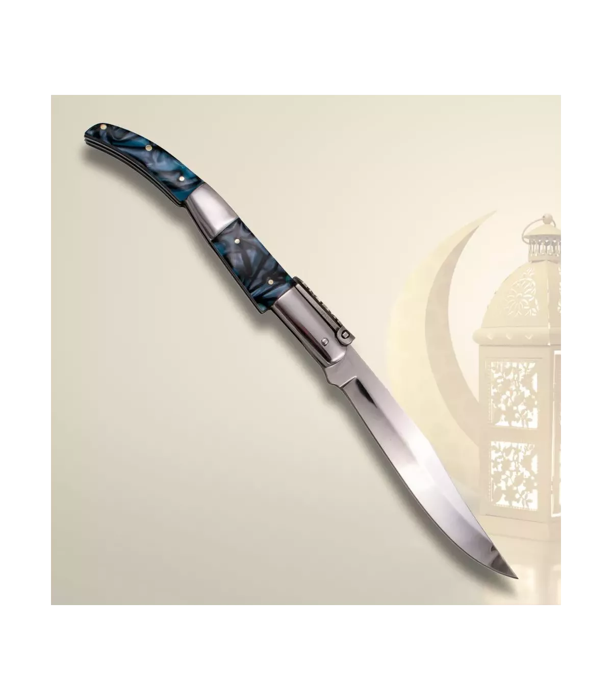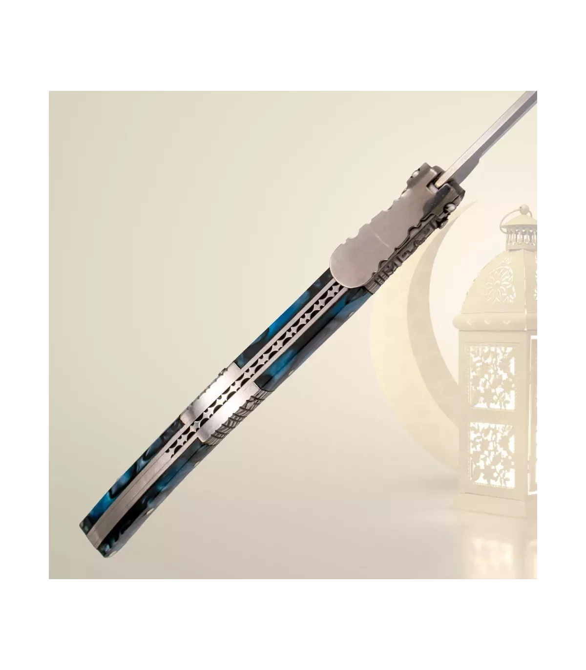 Avec une lame en acier 440 brillante de 13 cm, ce couteau allie durabilité et précision, vous permettant de réaliser des coupes nettes et rapides. Son manche, fabriqué en acier inoxydable et en acrylique bleu, se distingue non seulement par son esthétique moderne, mais aussi par sa prise en main confortable et sécurisée, en faisant votre allié parfait en toute situation.