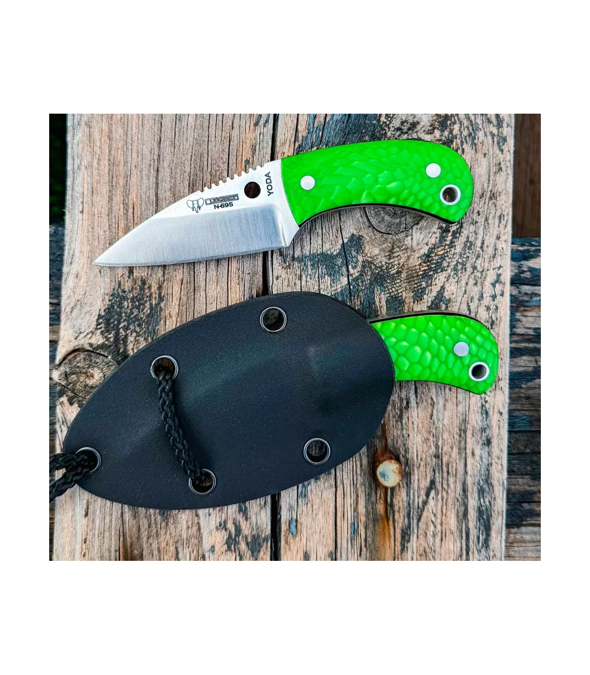 Couteaux Yoda Juma mango vert de Cudeman, étui Kydex