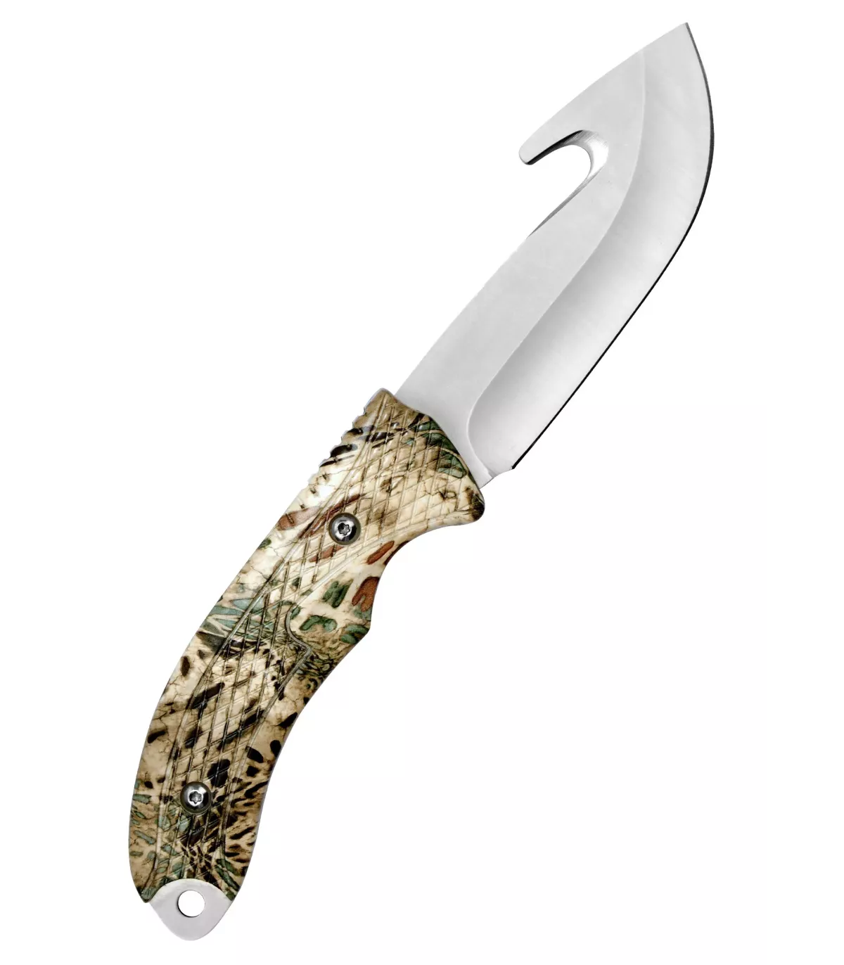 - Lame polyvalente : La lame à pointe de chute fabriquée en acier 420 mesure 10,2 cm de long et dispose d’un crochet aiguisé supplémentaire, parfait pour dépecer et vider les proies avec précision et facilité. Que vous chassiez en pleine nature ou prépariez votre prochain repas en plein air, ce couteau est votre allié fiable.