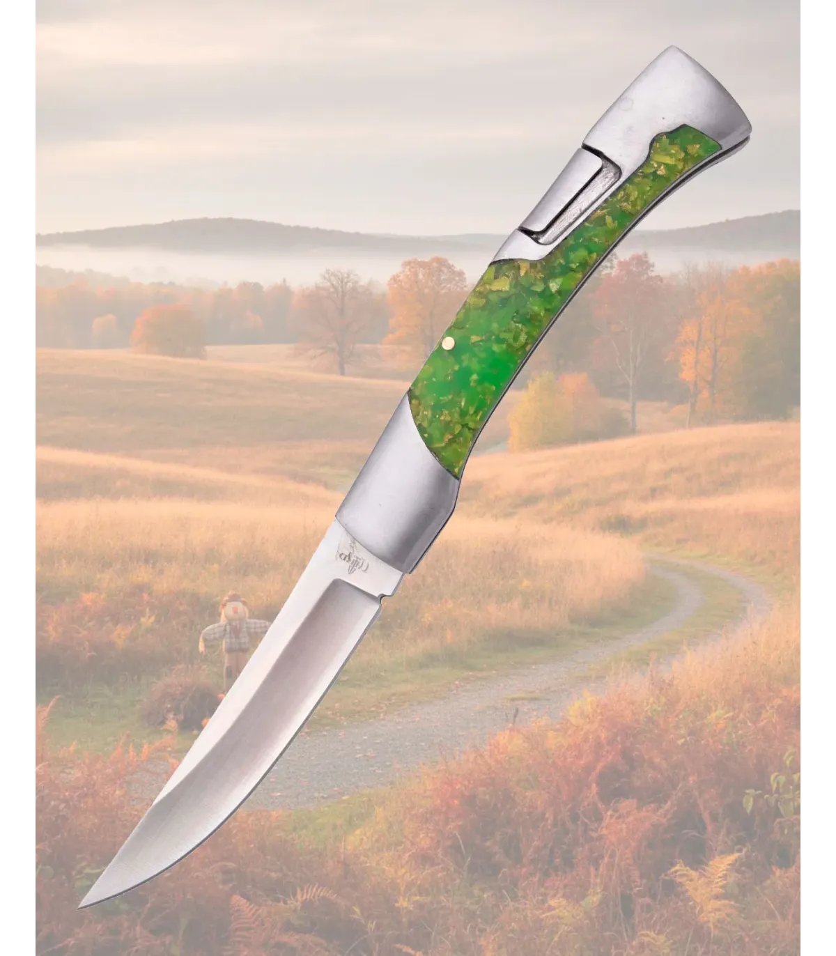 Couteau Third en acier 440 avec manche en acrylique vert fluorescent