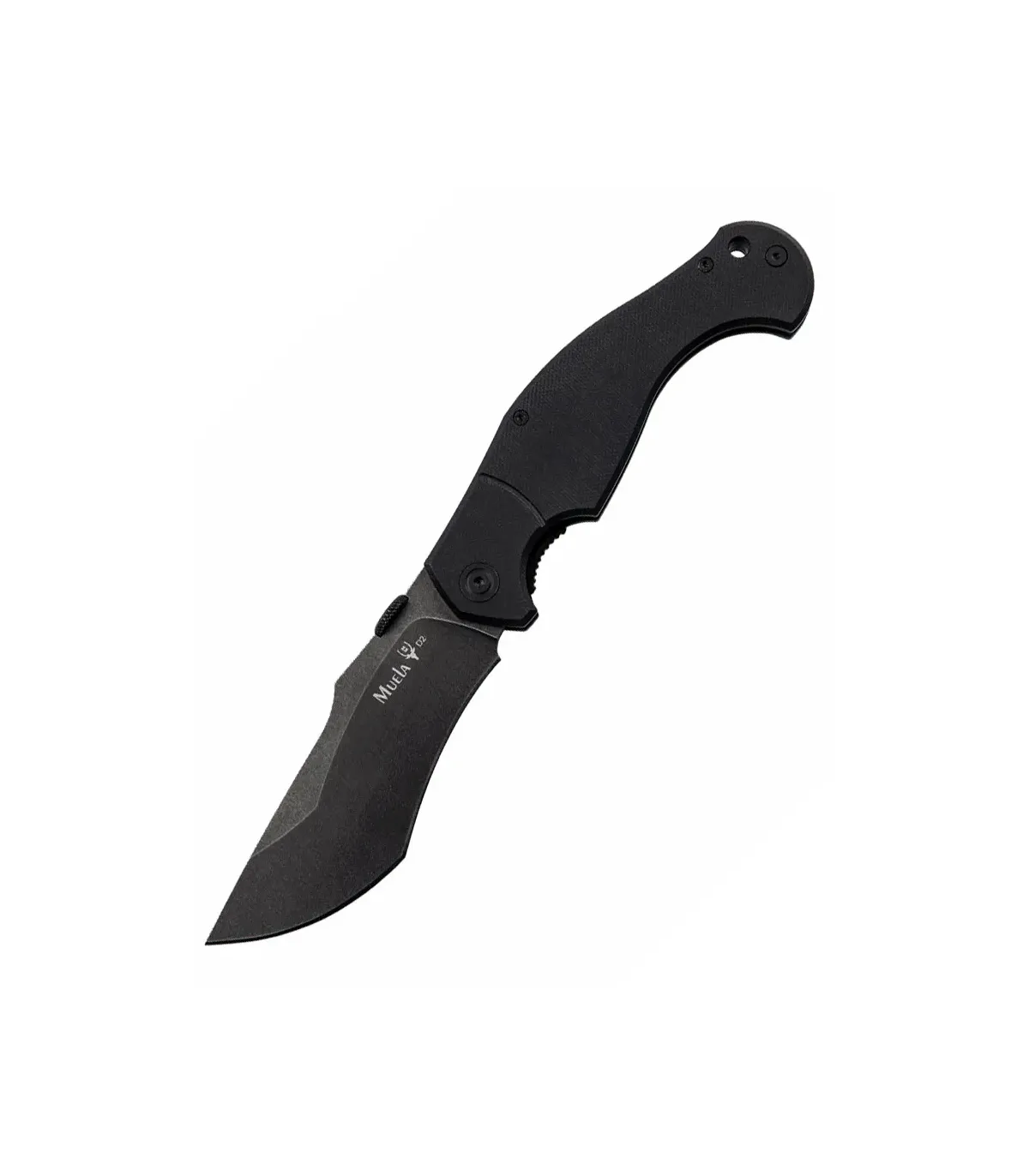 Le manche en G10 noir offre une prise en main ferme et durable qui ne dépend pas de textures agressives, s'adaptant à la main et améliorant le contrôle lors d'une utilisation prolongée. Les vis visibles reflètent un assemblage robuste et accessible pour l'entretien, et le trou à l'arrière permet d'ajouter un cordon de sécurité pour éviter les pertes dans des environnements actifs.
