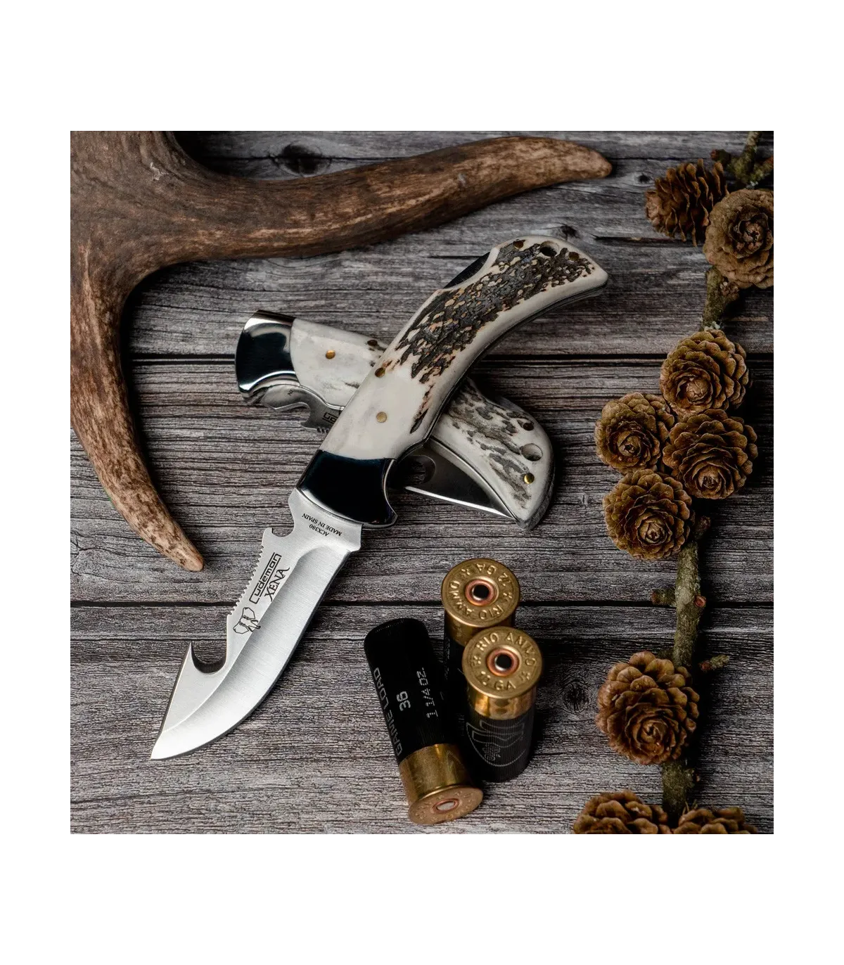 Découvrez l'exceptionnel couteau Cudeman fabriqué en Espagne ! Son manche en bois de cerf poli et sa lame en MoVa offrent une combinaison parfaite de style et de performance. Inclut un outil pour éviscérer. Avec une dureté de l'acier de 54/56 HRc, mesurée sur l'échelle Rockwell, ce couteau offre une excellente résistance et durabilité.