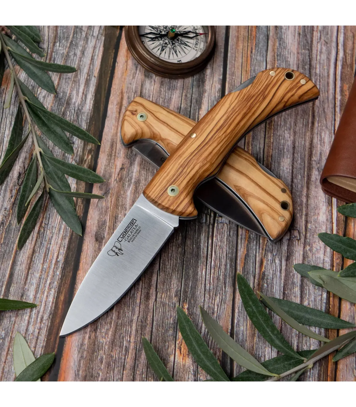 Couteau de la marque Cudeman fabriqué en Espagne. Le manche est en bois d'olivier et la lame en MoVa satinée. Caractéristiques :