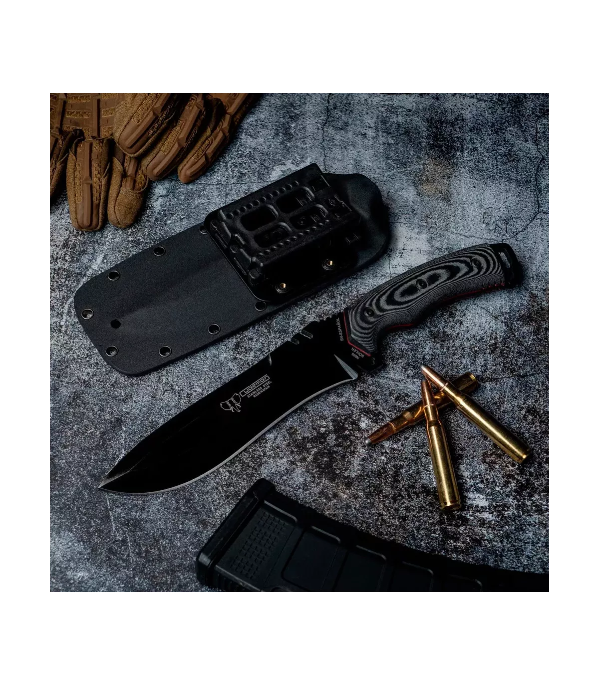 Avec sa poignée en micarta noire, le couteau 'Boina Verte' vous garantit une prise ferme et sûre en toutes circonstances. De plus, il comprend une étui en kydex qui vous permettra de le transporter de manière confortable et discrète. Ce couteau tactique est une véritable pièce maîtresse dans votre arsenal, capable de couper à travers n'importe quel obstacle grâce à sa lame de haute qualité.