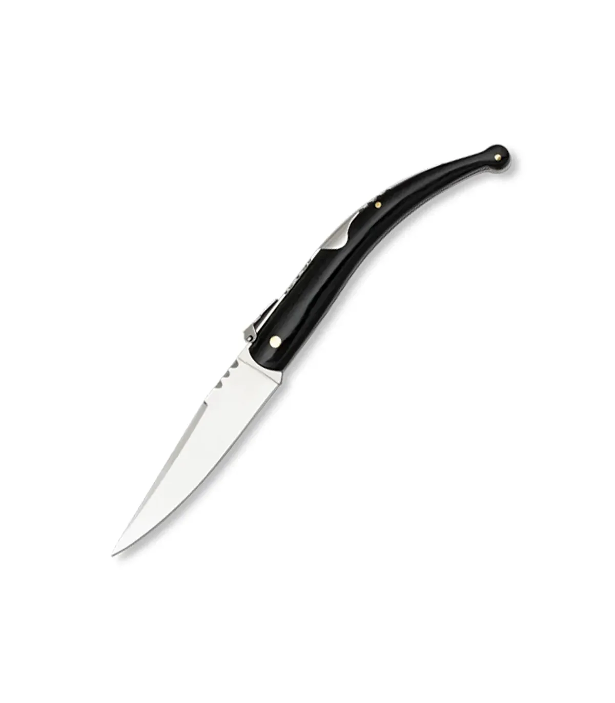 Couteau classique avec manivelle et manche courbé, lame de 8,5 cm.