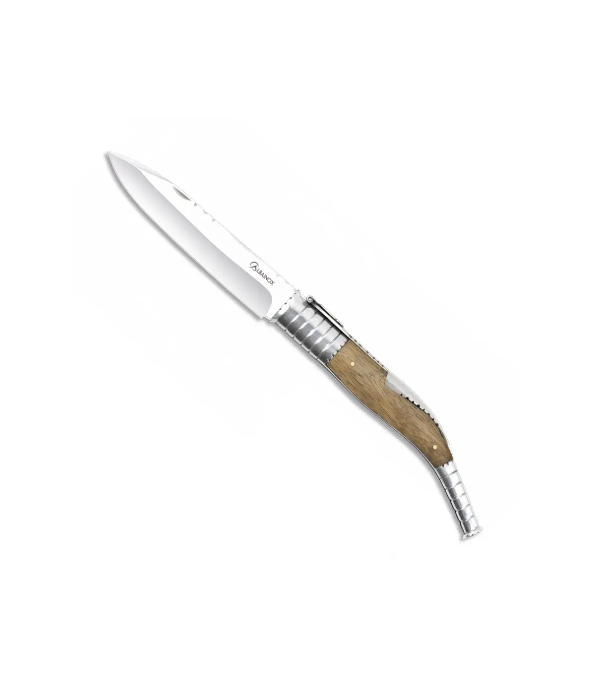 - Manche en bois zébré : Le manche est en bois zébré, connu pour ses caractéristiques attrayantes et son apparence rayée. Le choix de ce bois confère au couteau un aspect unique.