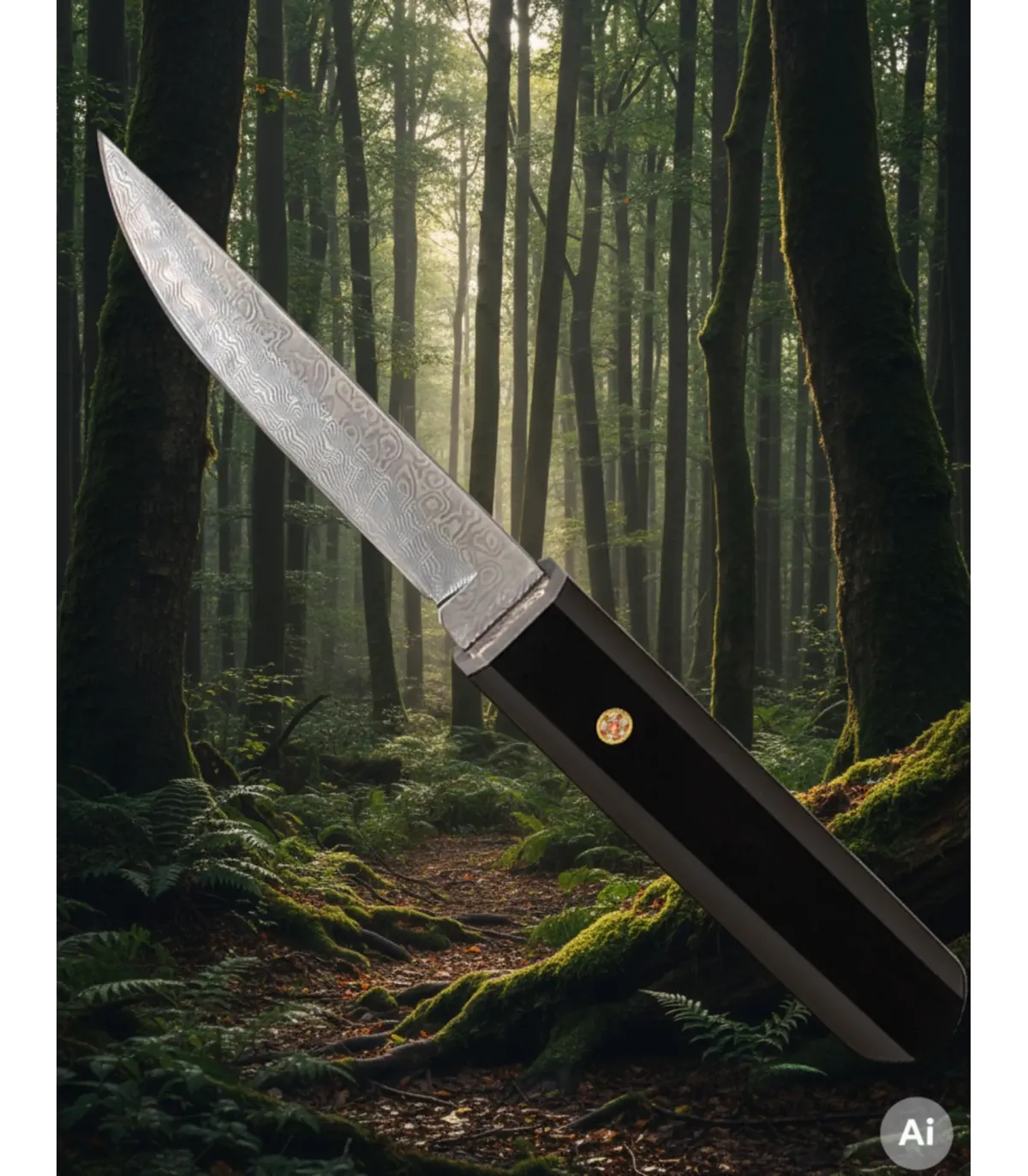 Il comprend un étui en bois d’ébène qui se marie parfaitement avec la poignée, offrant protection et facilité de transport. Présenté dans une élégante boîte noire avec mousse, c’est un cadeau idéal ou une pièce premium pour votre collection de couteaux d’aventure.
