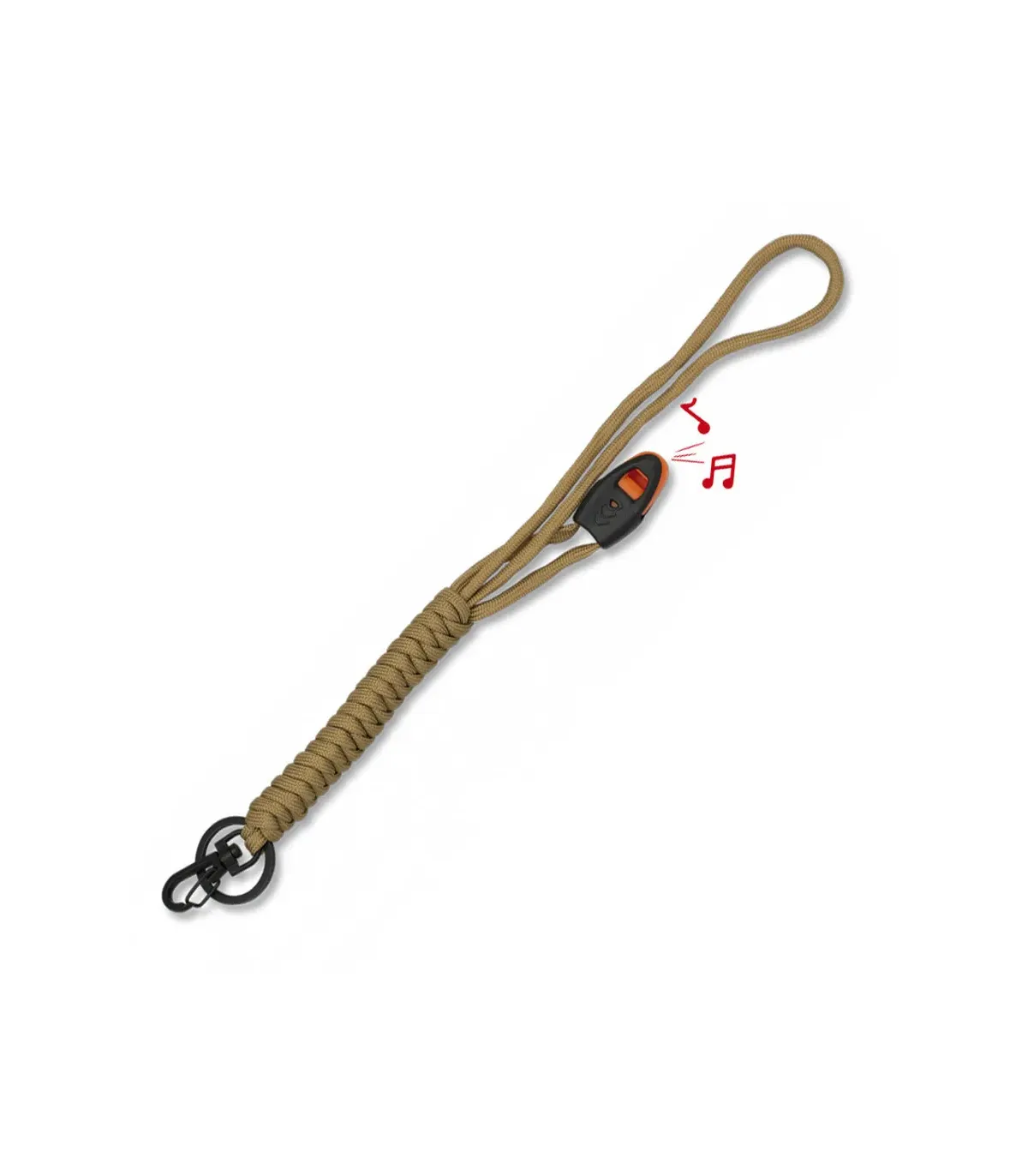 Le Paracord est connu pour sa résistance et sa polyvalence dans les situations de survie et d'urgence. Avec ce porte-clés, vous disposerez d'une corde durable en cas de besoin. De plus, le sifflet vous permet d'émettre des signaux sonores pour obtenir de l'aide.