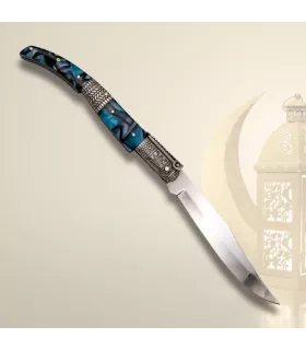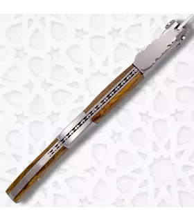 Il manico, spesso realizzato in legno d'ulivo o materiali artigianali, offre una presa comoda e sicura. I coltelli artigianali, come i classici coltelli di Albacete, si distinguono per la finitura impeccabile e i dettagli unici, ideali per collezionisti e utenti esigenti che cercano qualità e stile in uno strumento pratico.