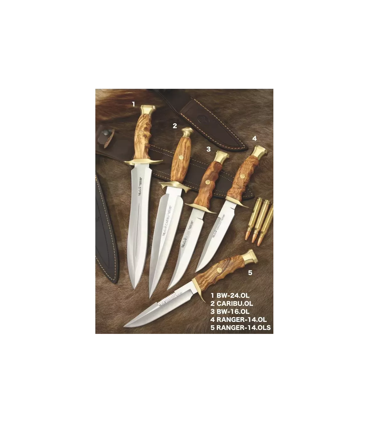 Stai cercando coltelli da caccia di alta qualità ed eleganti? Il prestigioso marchio spagnolo Muela ha ciò di cui hai bisogno con i suoi modelli BW, Caribu e Ranger. Tutti questi coltelli sono dotati di un manico in legno di olivo e di una elegante rivetta in ottone.
