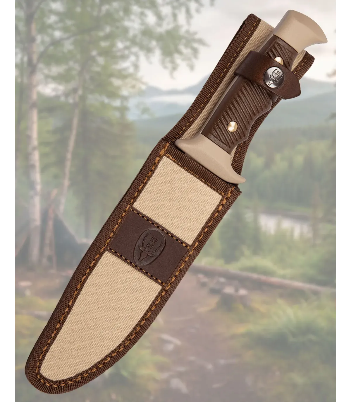 La lama con finitura beige, con una leggera curvatura e un bordo seghettato sul dorso, facilita tagli controllati in materiali resistenti, offrendo anche opzioni pratiche quando hai bisogno di maggiore presa su superfici fibrose. La guardia alla base funge da barriera di sicurezza, prevenendo scivolamenti e permettendoti di lavorare con fiducia anche in situazioni di grande impegno.