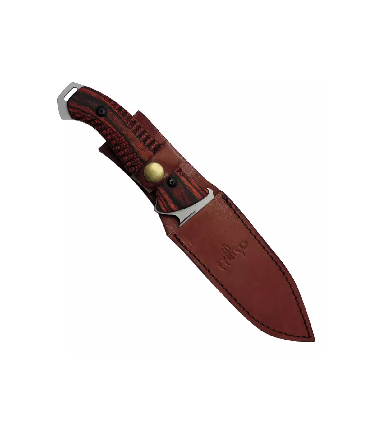 Se sei un cacciatore alla ricerca di un coltello da caccia di alta qualità e durata, il Coltello da Caccia con lama in acciaio inossidabile satinato e manico in legno di Pakkawood è lo strumento perfetto per te! Con una lama lunga 11,5 cm e un manico in legno di Pakkawood, questo coltello da caccia ti garantirà un taglio affilato e preciso in ogni momento.