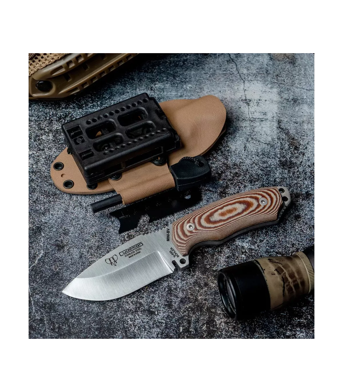 La lama in acciaio Böhler N695 è resistente alla corrosione ed è progettata per sopportare le attività più impegnative, mentre il manico in micarta marrone garantisce una presa sicura e confortevole, permettendoti di lavorare con precisione e fiducia.