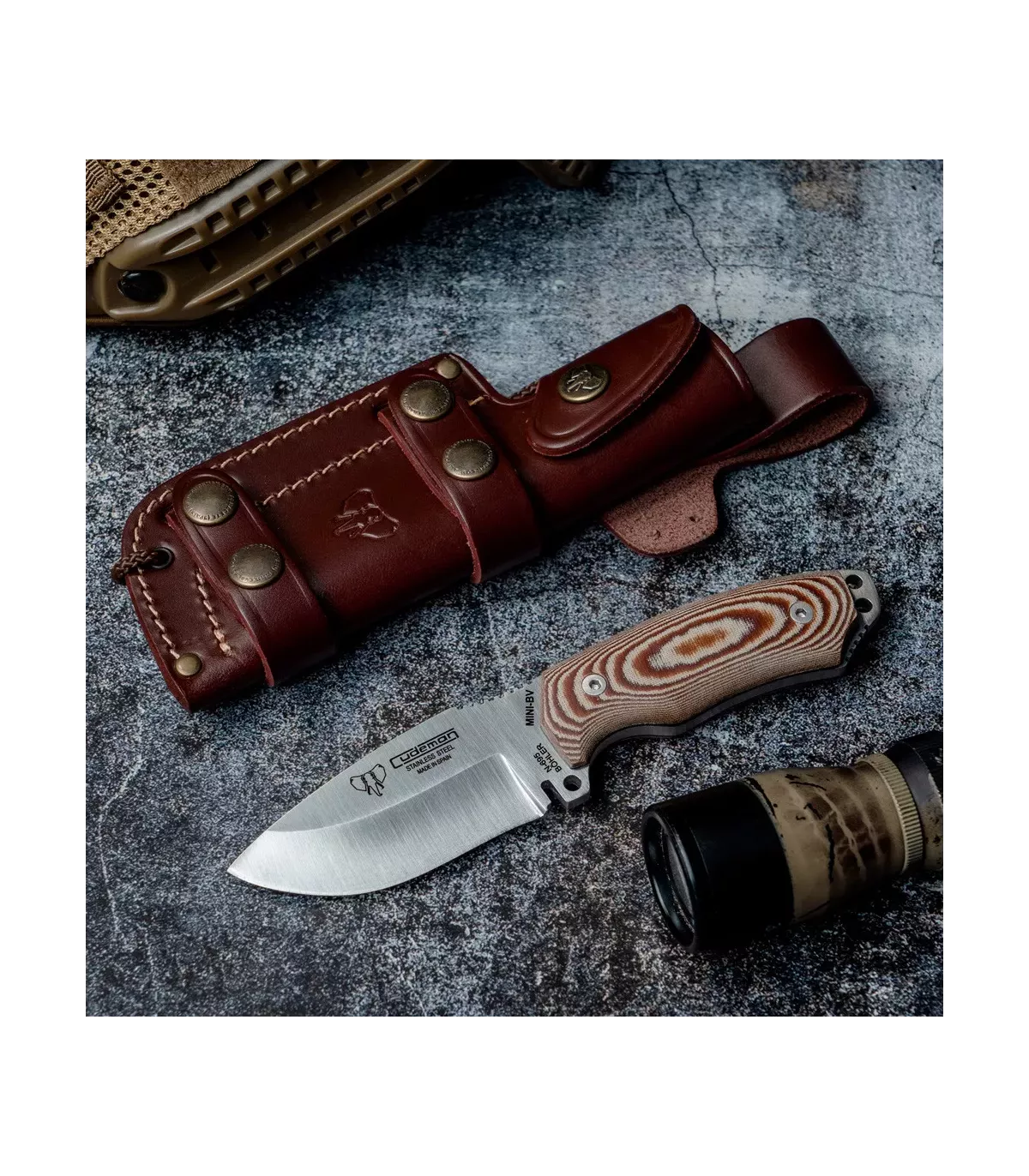Stai cercando un coltello di sopravvivenza che puoi portare con te in qualsiasi spedizione? Allora, il coltello di sopravvivenza Mini Boina Verde del marchio Cudeman è perfetto per te. Realizzato ad Albacete, in Spagna, questo coltello è dotato di una lama in acciaio Böhler N695 e di un manico in micarta marrone, che lo rendono resistente e durevole.