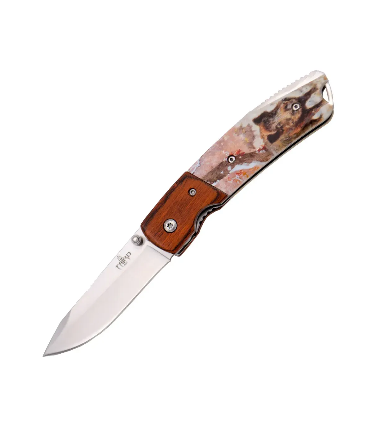 Il manico, realizzato con una combinazione di legno e ABS, offre una presa comoda e sicura, assicurando una maneggevolezza ottimale in ogni situazione. Con una lunghezza del manico di 11,20 cm e una lunghezza totale di 19 cm, questo coltello è compatto e facile da trasportare.