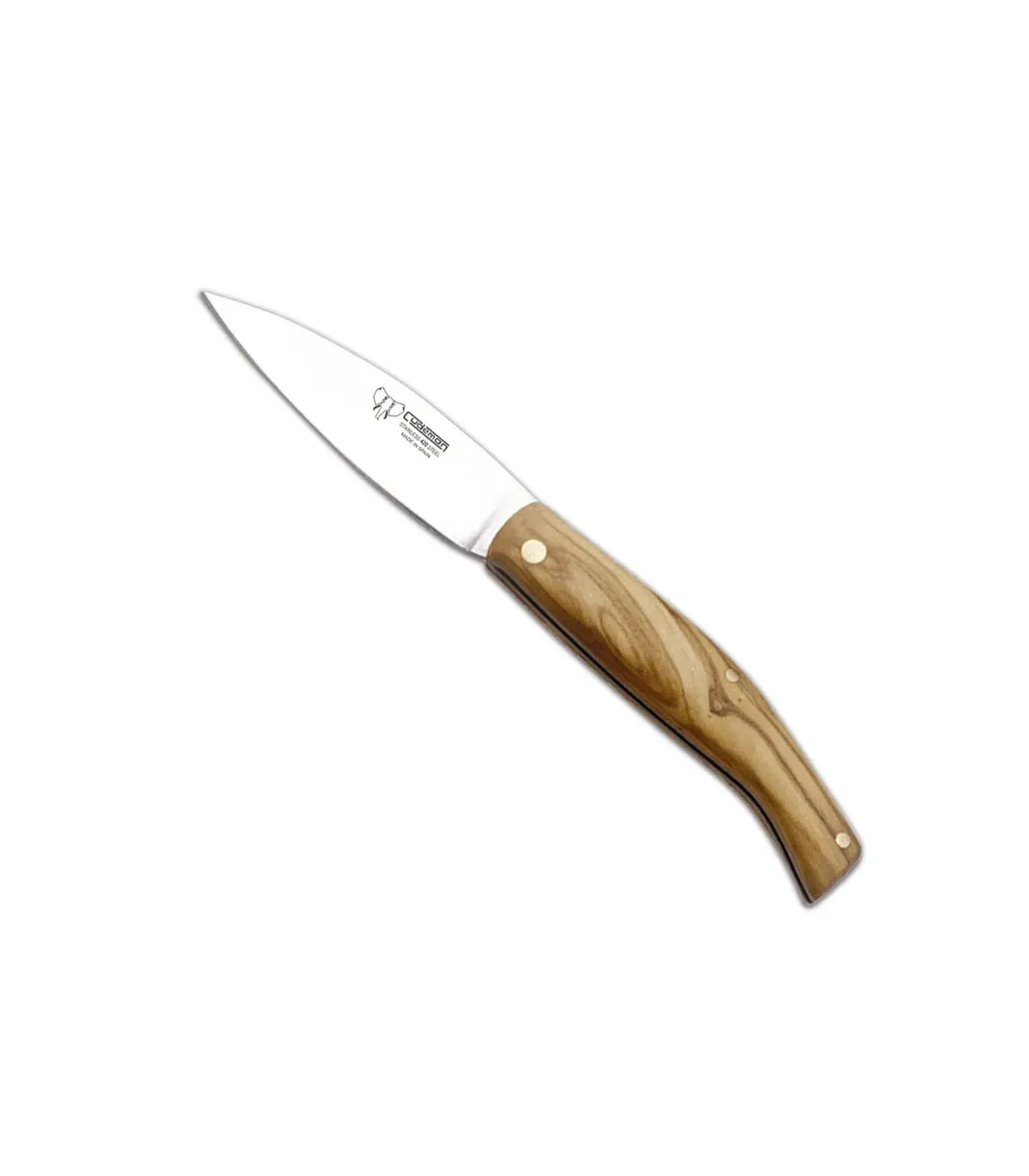 Coltello in acciaio 420 con manico in ulivo, lama di 7 cm.