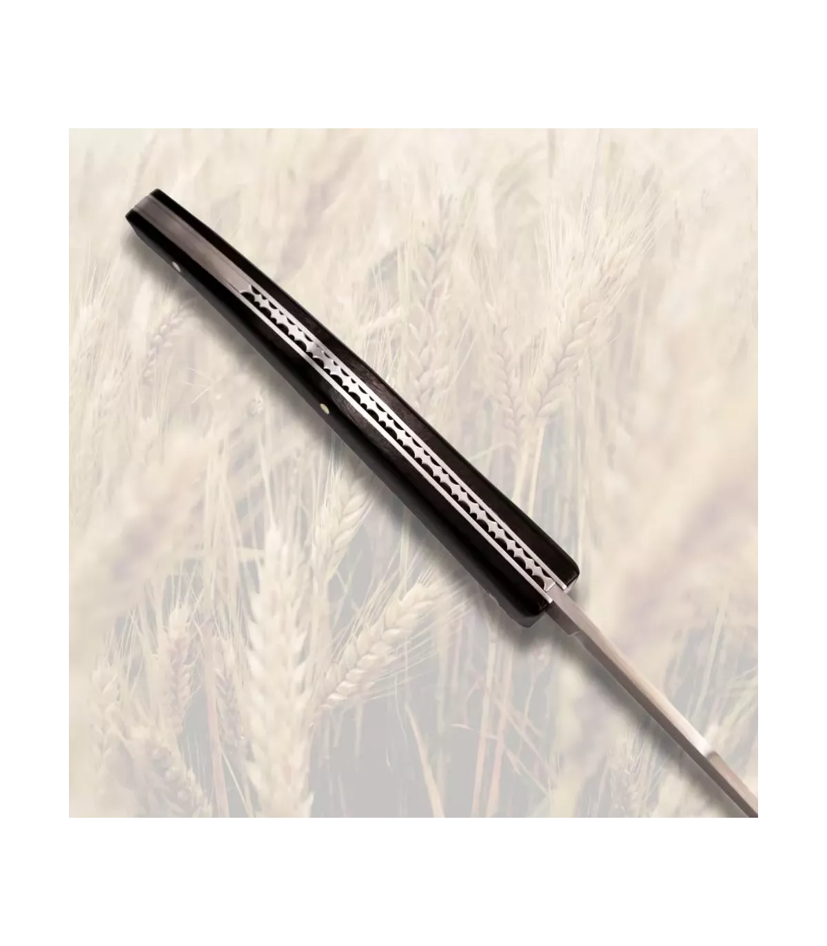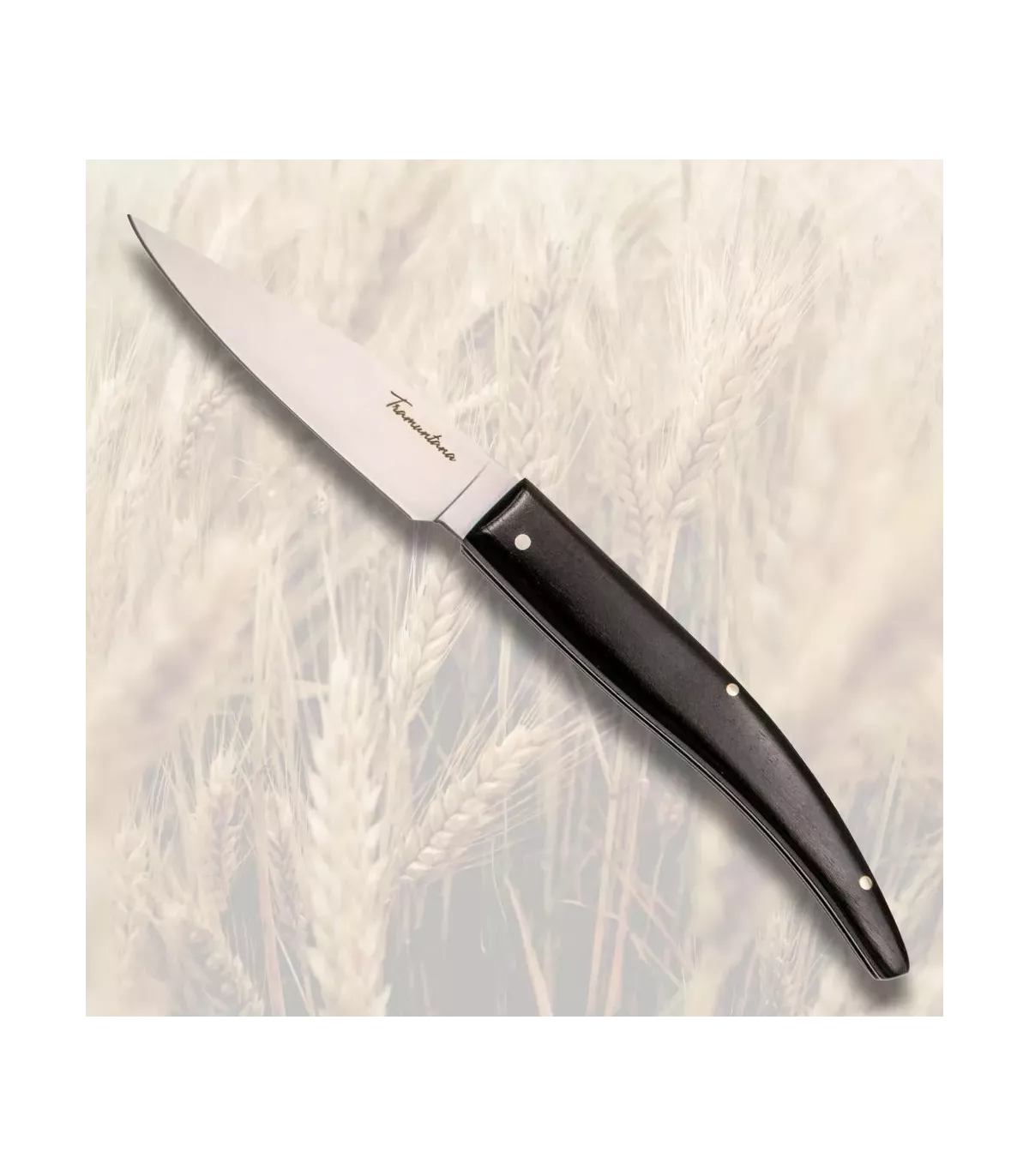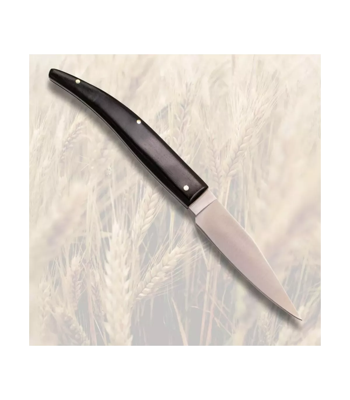 Con il suo manico in legno di ebano, ogni coltello racconta una storia di qualità e stile. La sensazione calda e naturale del manico non solo offre una presa comoda e sicura, ma conferisce anche un tocco di raffinatezza a ogni utilizzo. Questo materiale non è solo visivamente attraente, ma anche resistente, assicurando che questo modello sia il tuo compagno di fiducia in ogni situazione.