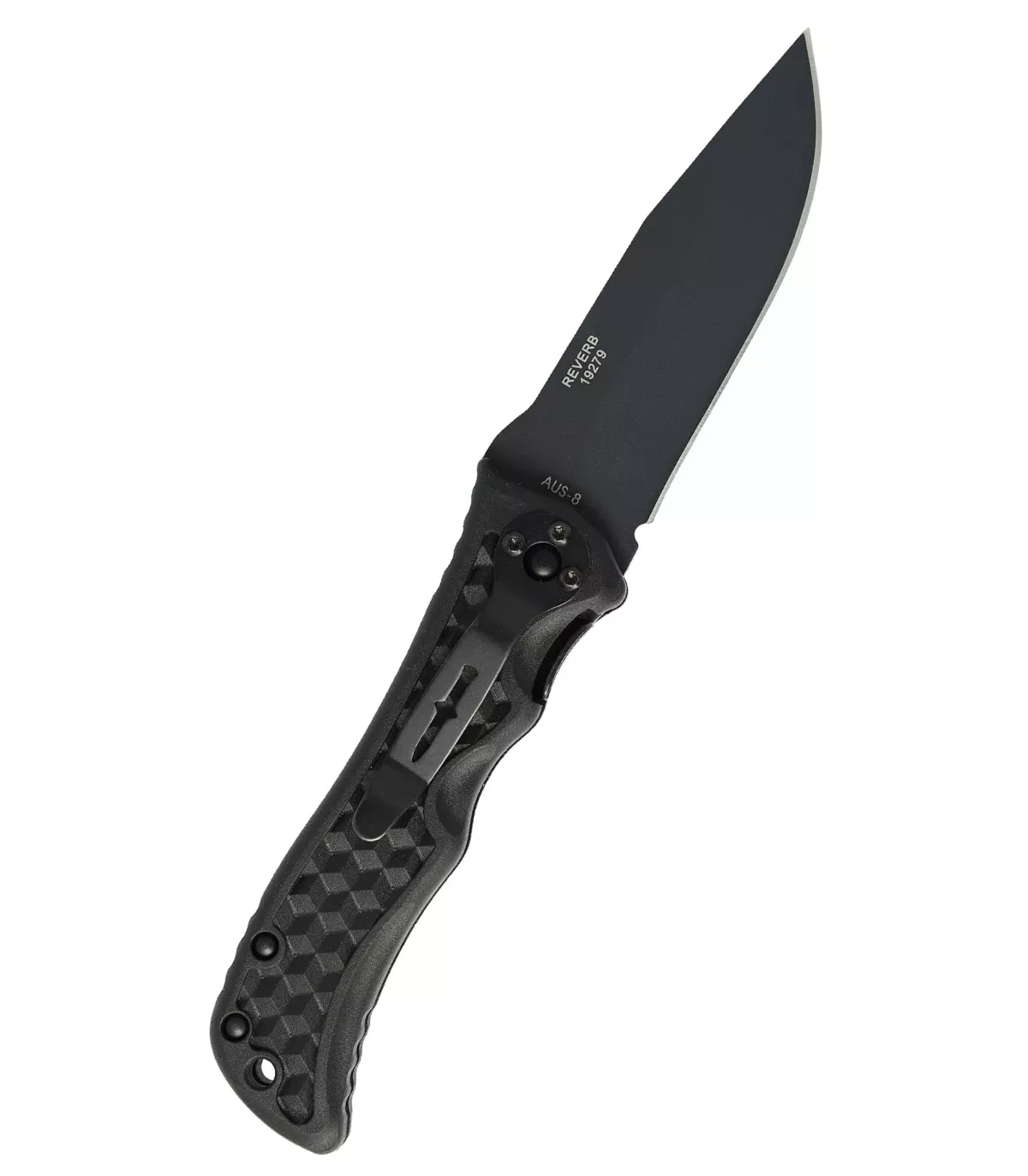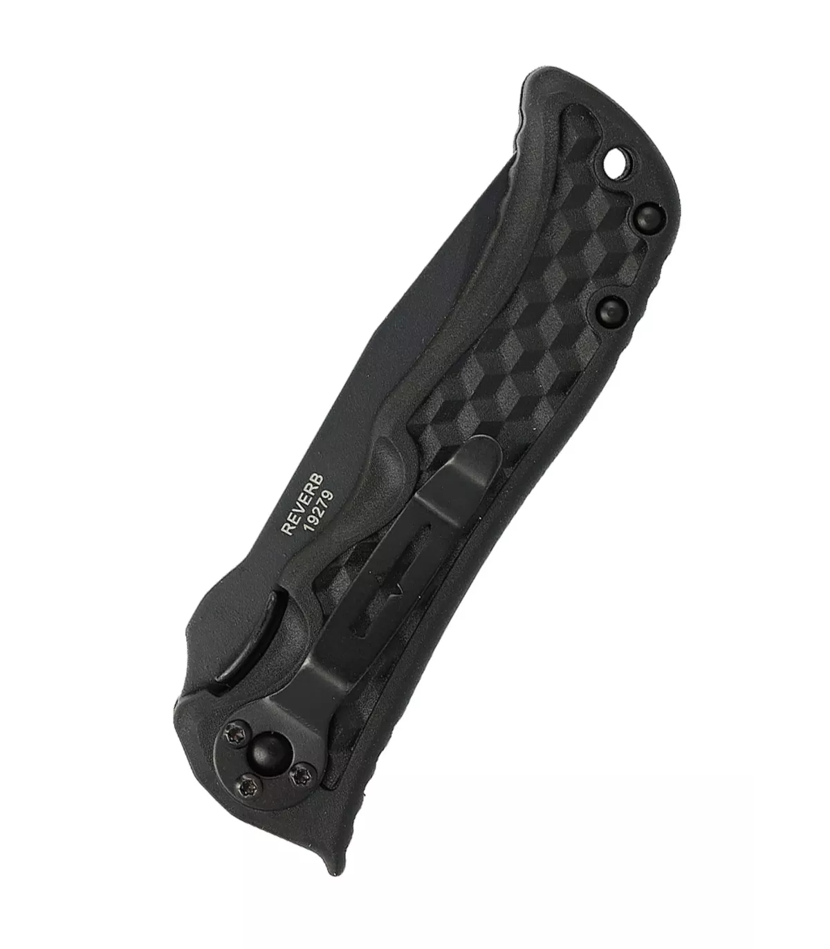 - Funzionalità aggiuntive: Il Coltello REVERB è dotato di una clip in acciaio inossidabile nero per un trasporto pratico e di un foro per cordino all'estremità del manico. Inoltre, il sistema di blocco liner garantisce la sicurezza durante l'uso.