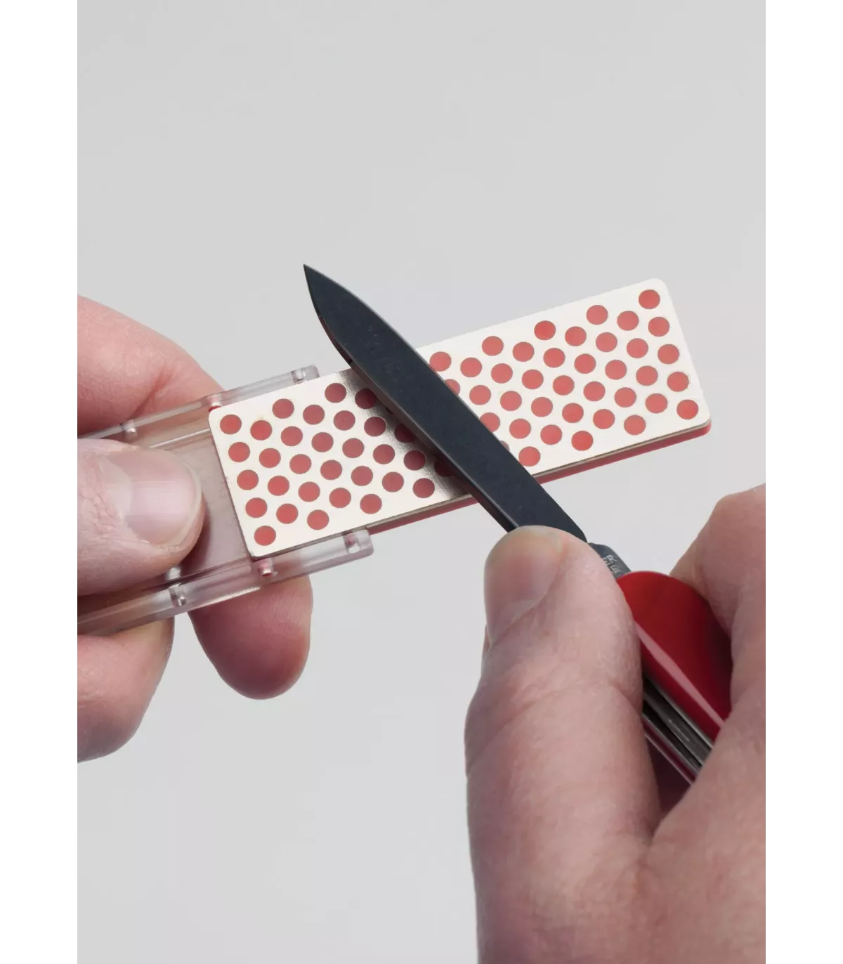 - Afilatura in movimento: Con un piccolo affilatore piatto con superficie monocristallina (600 mesh), questo coltello ti permette di mantenere la lama affilata in qualsiasi momento e luogo, senza bisogno di olio. Il suo design compatto e leggero consente di portarlo facilmente su un portachiavi, una cerniera o uno zaino.