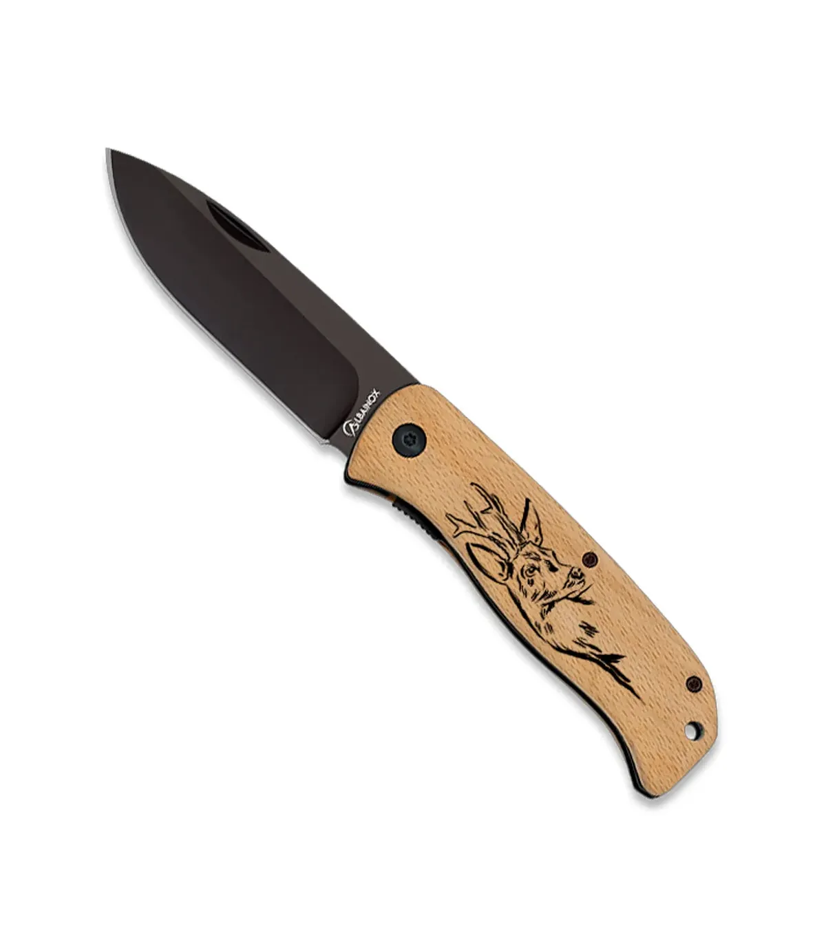 Coltello da campo Albainox lama in acciaio annerito modello Cervo (8,5 cm).