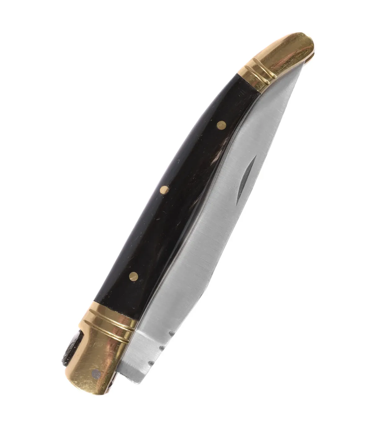 Immergiti nell'arte raffinata araba con questo coltello stile Laguiole, meticolosamente realizzato a mano per offrirti il meglio in qualità e stile. Con una lama pieghevole forgiata in acciaio inossidabile 440 e manici in corno, questo coltello è un'opera d'arte che unisce eleganza e funzionalità alla perfezione.