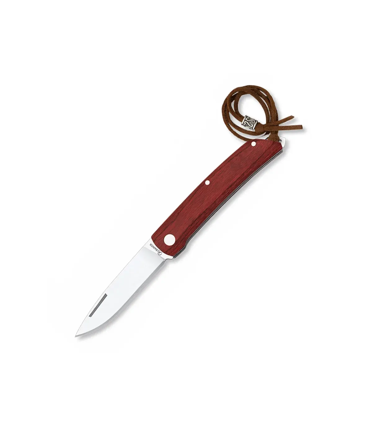 Il coltello Albainox dispone di un blocco a pistone che garantisce che la lama rimanga chiusa in modo sicuro quando non viene utilizzata. Il coltello include anche una corda in polipelle, utilizzabile per molteplici scopi.