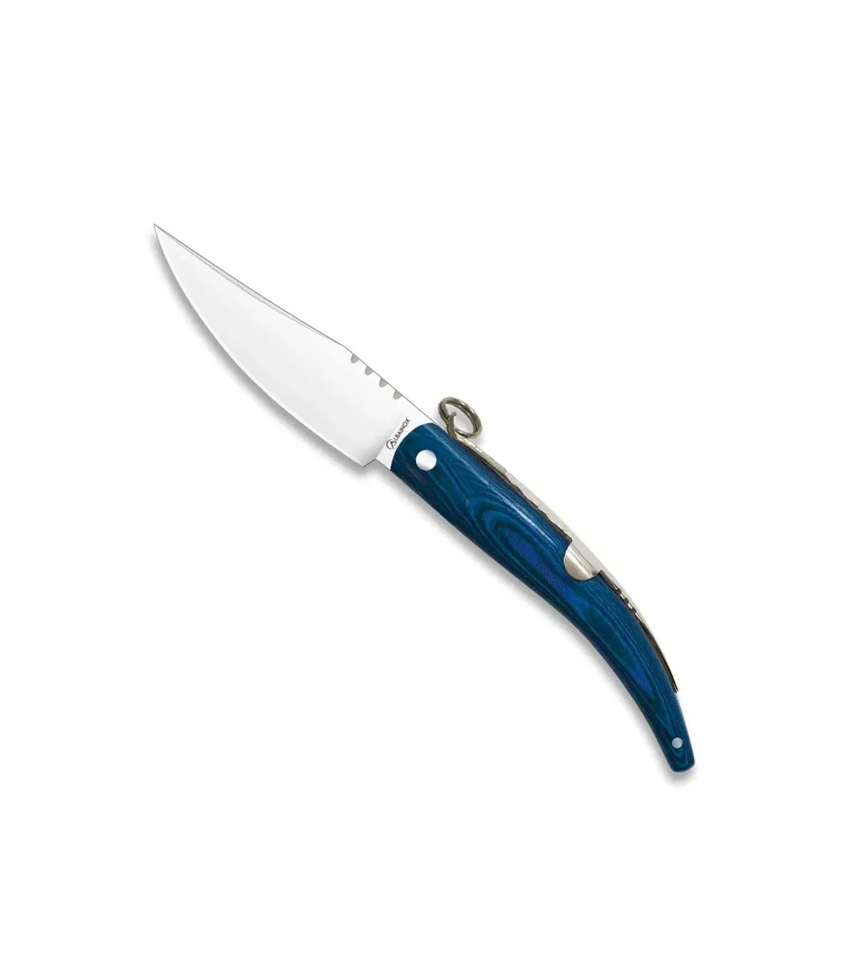 Il coltello classico con anello, manico stamina blu è uno strumento indispensabile per chiunque voglia avere un coltello di qualità a portata di mano. Questo coltello è realizzato con materiali di prima qualità, come l'acciaio inossidabile per la lama e il manico in stamina. La lama ha una punta normale e una finitura lucida, rendendola perfetta per una varietà di compiti, dal taglio della carne all'apertura dei pacchi. Il manico è ergonomico e comodo da impugnare, anche durante lunghi periodi di utilizzo. Il coltello è inoltre dotato di un blocco a leva con anello, che lo rende sicuro da usare.