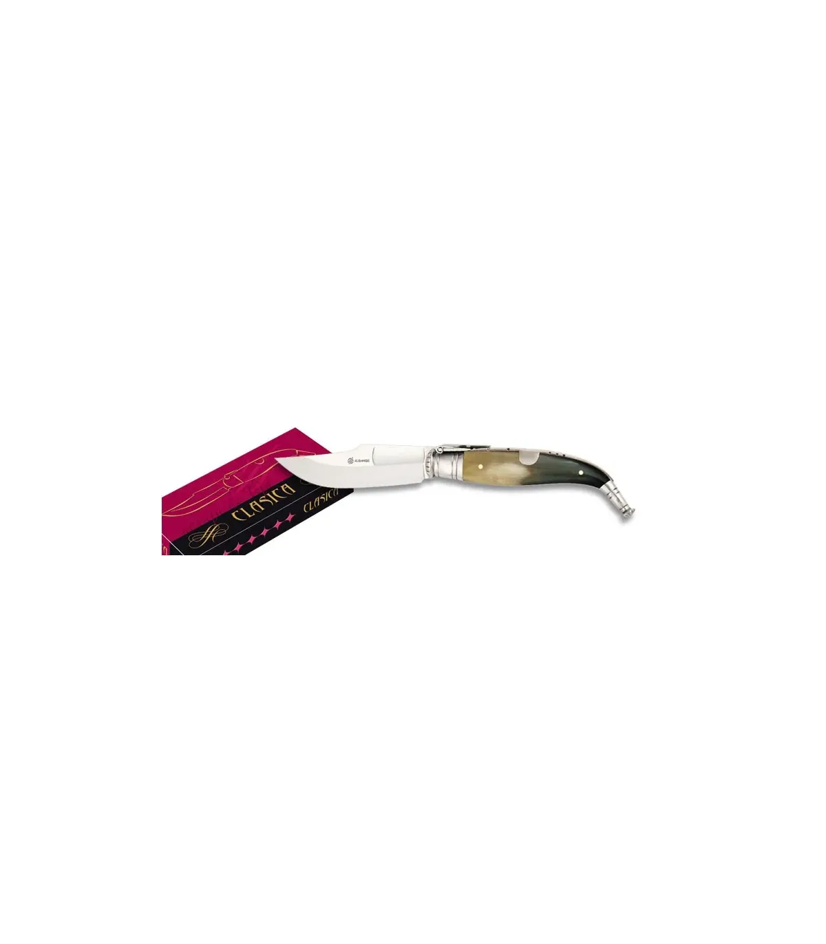 Scopri la vera essenza dell'eleganza e della tradizione con il Coltello da Tasca in Corno di Toro di Martinez-Albainox! Questo coltello è molto più di uno strumento, è un'opera d'arte realizzata con materiali nobili di prima qualità. Permettimi di presentarti le sue caratteristiche eccezionali e le ragioni per cui questo coltello si distingue da tutti: