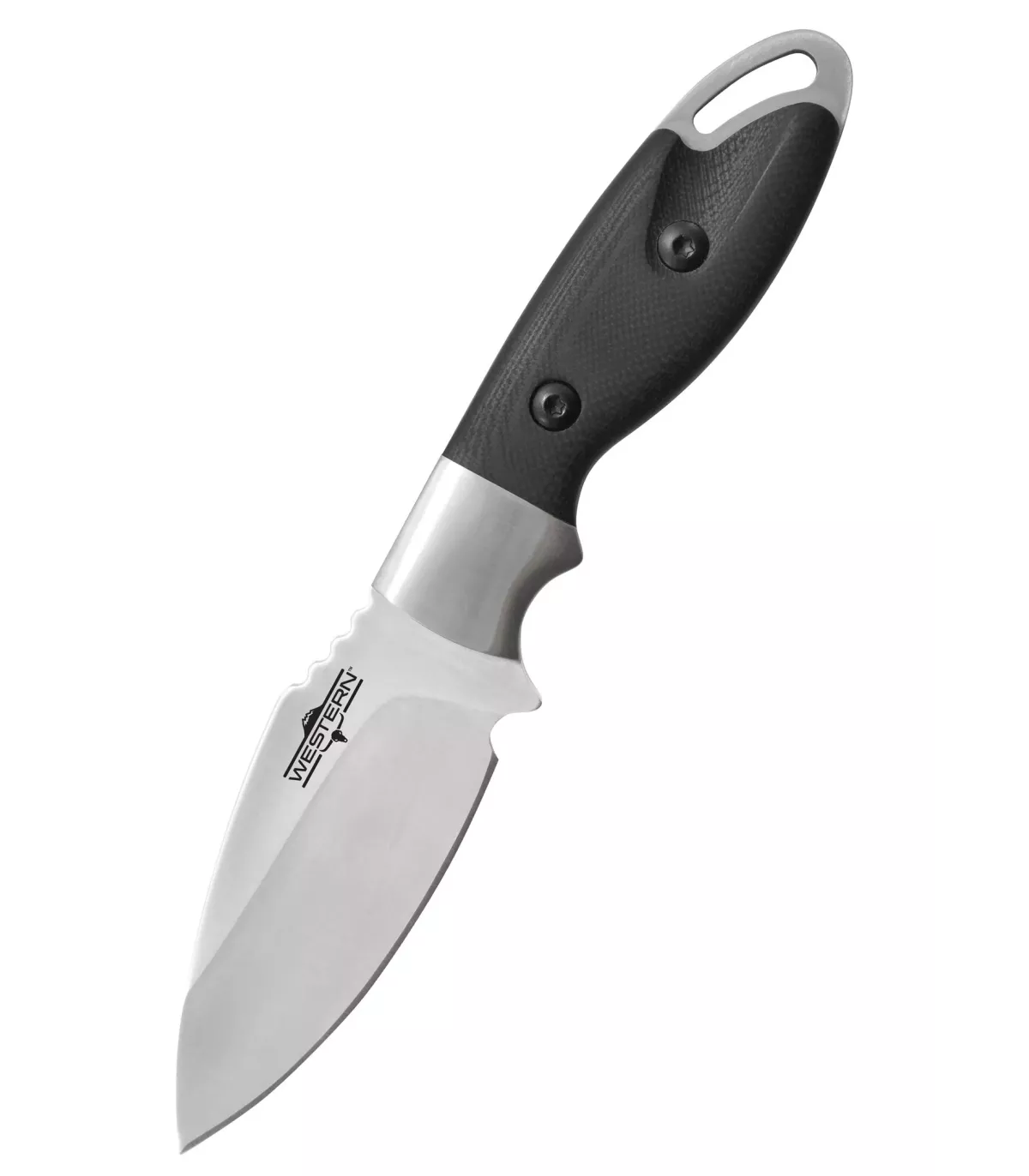 - Impugnatura ergonomica in G-10: L'impugnatura ergonomica è realizzata in G-10, un materiale resistente e impermeabile all'umidità e ai liquidi. Questa caratteristica la rende ideale per l'uso in qualsiasi clima o ambiente. Inoltre, dispone di un foro per cordino, che permette una presa sicura e comoda, anche in condizioni avverse.