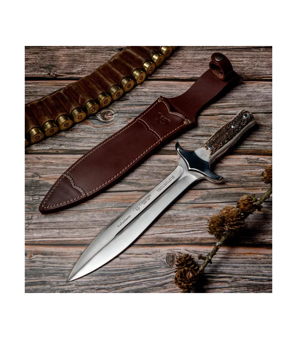 Il manico in asta di cervo lucidato aggiunge un tocco di autenticità ed eleganza a questo coltello. Il suo design ergonomico garantisce una presa comoda e sicura, permettendoti di avere un controllo assoluto in ogni movimento.