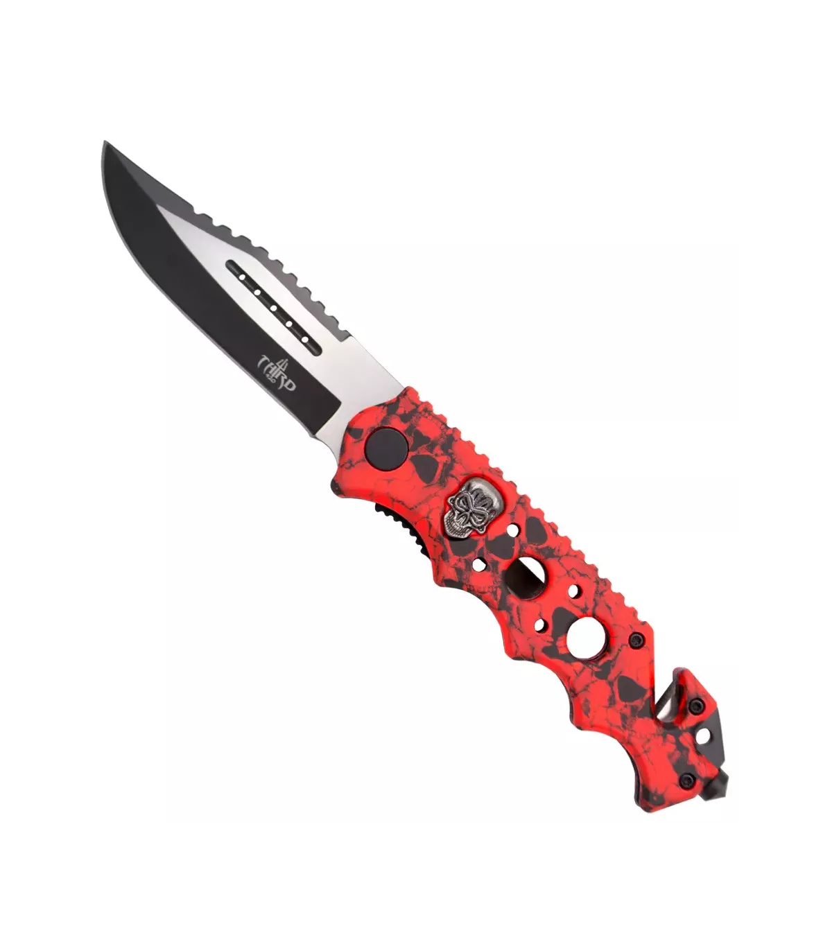 Coltello tattico Third design teschio, colore rosso (21,2 cm.)