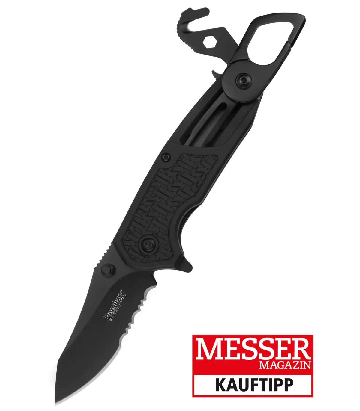 Il manico del Funxion EMT è leggero e resistente. Un inserto antiscivolo K-Texture™ migliora una presa sicura. Questo coltello di salvataggio viene fornito con una clip di trasporto profonda di Kershaw per un trasporto sicuro in tasca. Può anche essere agganciato ovunque con il moschettone incorporato. Per maggiore sicurezza, la lama si blocca quando il moschettone è fuori.