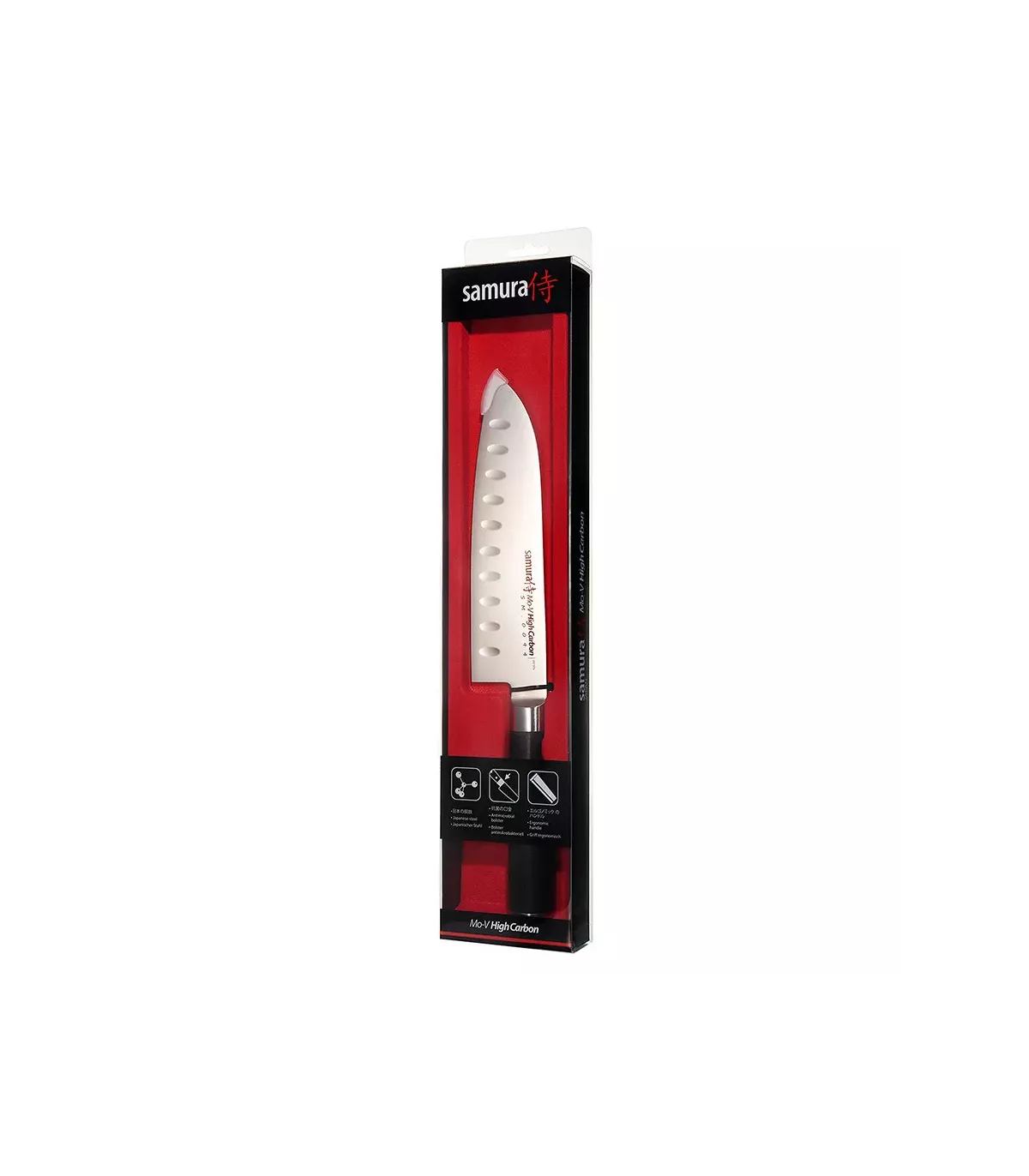 Aggiungi il coltello da cucina Santoku Samura modello MO-V alla tua collezione di utensili culinari e scopri la versatilità e le prestazioni offerte da questo coltello giapponese. Che tu stia preparando piatti tradizionali giapponesi o esplorando nuove ricette, questo coltello ti garantirà la fiducia e la precisione necessarie per ottenere risultati eccezionali.