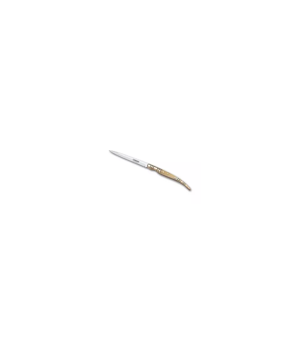 Non perdere l'opportunità di possedere questo pezzo di artigianato eccezionale. Con il suo manico in imitazione di corno e dettagli in ottone stampato, questo coltello stiletta non è solo uno strumento affidabile, ma anche un vero oggetto di ammirazione. Acquista subito questo coltello stiletta unico e aggiungi un tocco di eleganza al tuo stile!