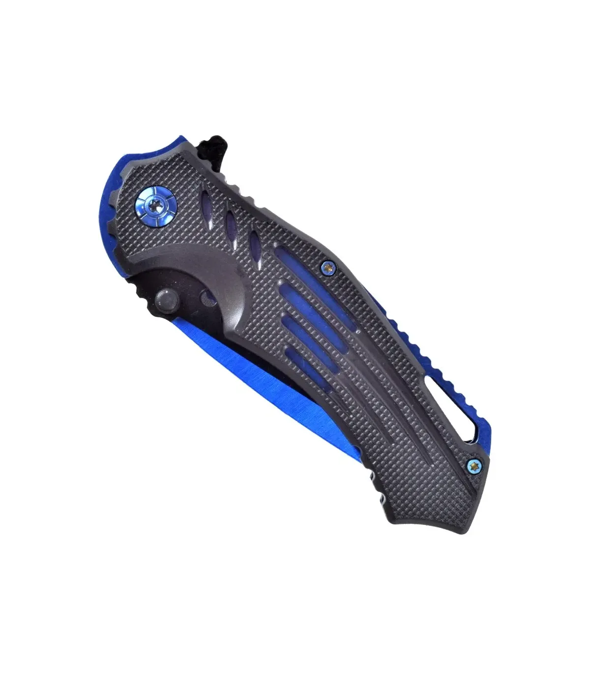 Fatti notare con l'elegante e funzionale coltello tattico blu SCK, lo strumento perfetto per ogni sfida che ti si presenta. Con una lama in acciaio inossidabile resistente, questo coltello pieghevole da tasca ti offre sicurezza e versatilità in ogni situazione.