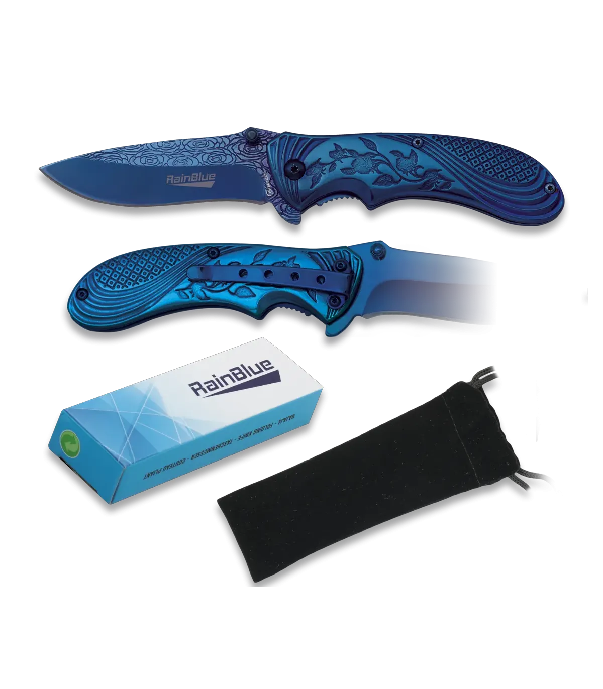 - Presentazione: Il Coltello Rainblue viene consegnato in una elegante scatola colorata, perfetta come regalo. Sorprendi amici e familiari con questa gemma di strumento.
