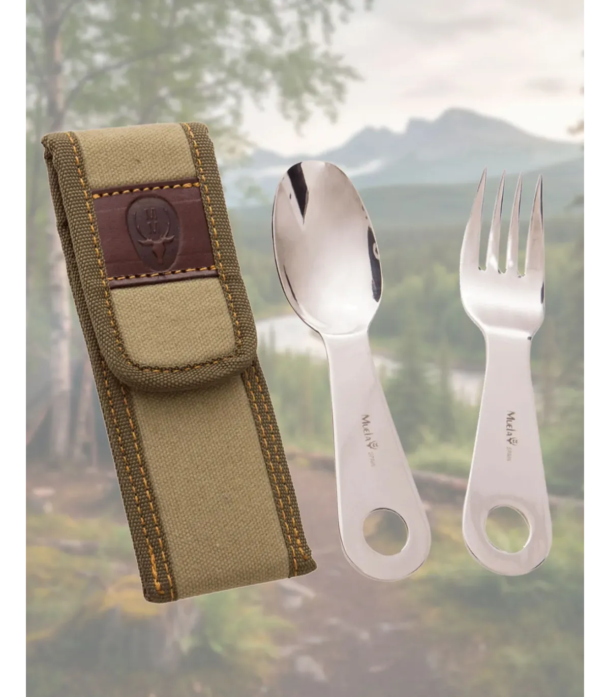 Set di posate Muela per camping in acciaio inox, custodia